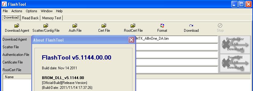 Berikut ini contoh tampilan Flash Tool versi 5.1144.00.00: