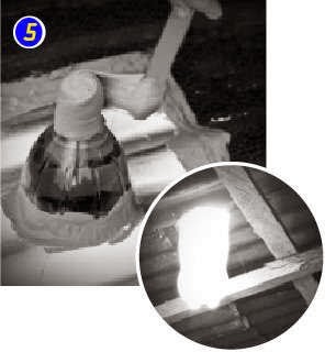 5. Masukkan setengah bagian botol ke dalam lubang pada lembaran seng,