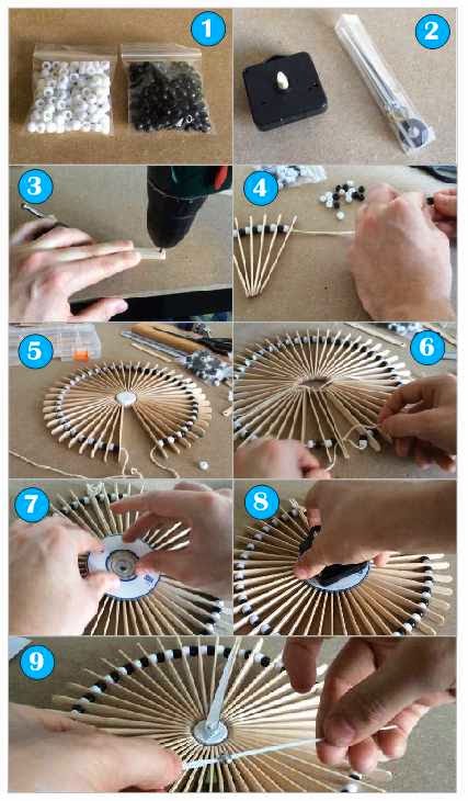- Jam dinding dari stick ice cream siap untuk dipasang.